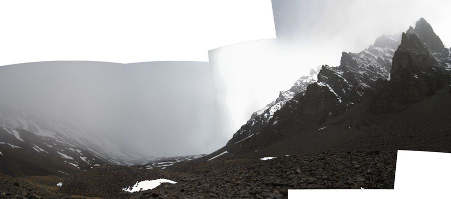 Не хочу брать никакого железа, даже ледорубов. Никаких крючьев, систем, карабинов. Трекинговые ботинки — достаточно мощные, но не с жесткой подошвой, простые кошки и лыжные палки — вот и все спецснаряжение. Предполагаются только радиальные выходы до ледников — не лезть в трещины, на скалы и т.д.
