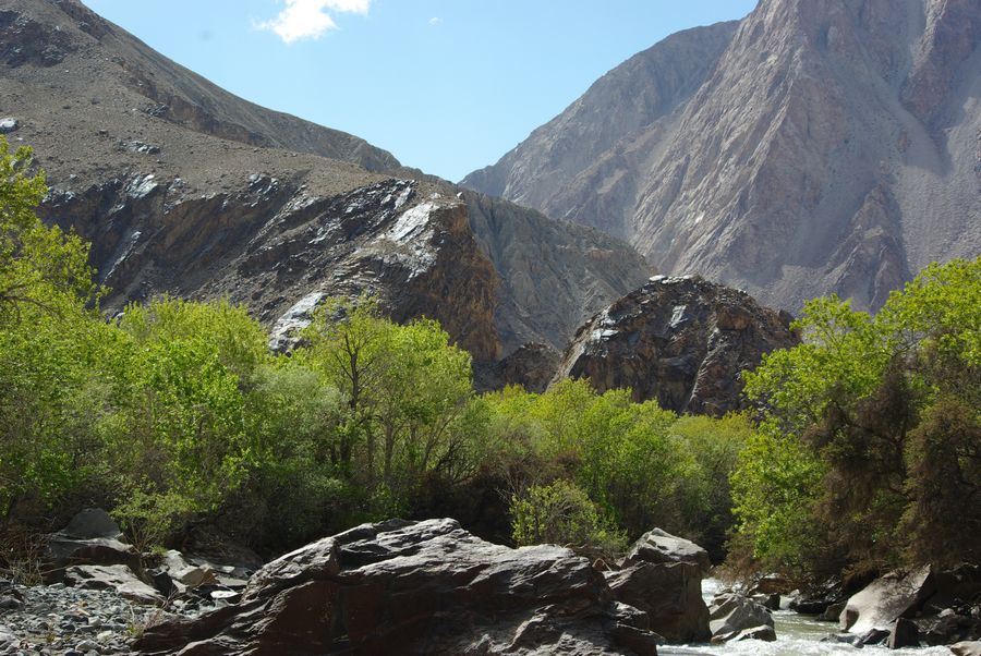 Почему я обозначаю заезд отдельным этапом? Из Душанбе до Рушана можно круглый год подъехать без особых проблем. А вот вверх по реке Бартанг дорогу 145 км ежегодно местами смывает/заливает. Это пишут в отчетах практически все группы, побывавшие в районе. Приходится, например, ехать на одной машине, потом идти пешком, и далее искать другую машину. А там не улица Горького. Проблемы бывают летом, в июле-августе, когда интенсивно тают ледники. Потом дорогу восстанавливают. Именно поэтому выбрано такое время мероприятия: май-июнь. Таким образом, подъезд/отъезд может оказаться довольно напряженным и неопределенным мероприятием.
