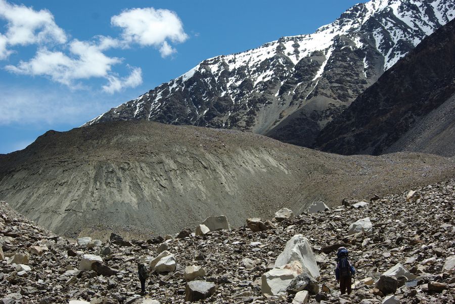 Поперек долины лежат несколько огромных конечных морен. Приходится подниматься и спускаться с них.