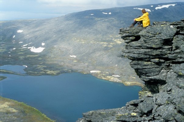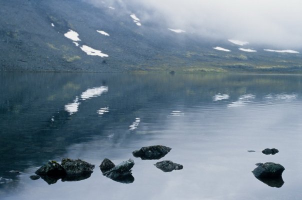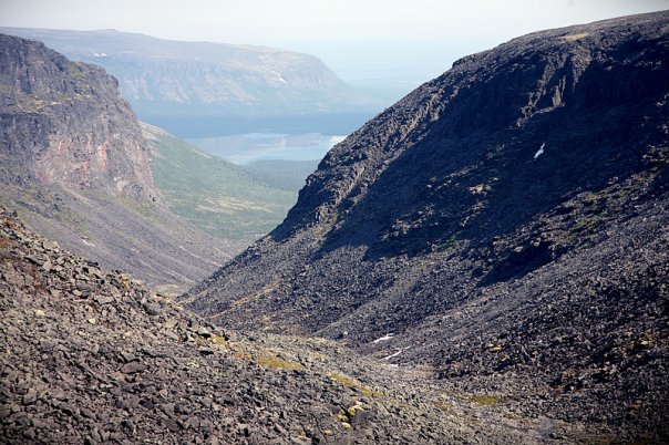 Прибыли в Оленегорск примерно к полудню. Машина, с которой была договоренность не приехала, на связь не выходила. Быстро разрешили вопрос с заброской, оказавшимся кстати автобусом, арендованным какой-то коммерческой тур.группой до Умбозерского рудника. Погрузили вещи, к 14 часам прибыли на рудник. По пути забросили прибившегося к нам в поезде деда до Ревды. Небо ясное, тепло, небольшая дымка над Хибинами. Начали подъем на Аллуайв. К вершине идет извилистая, выраженная колея. Поверхность - средний камень. Идется нормально, рюкзаки с полной раскладкой. ближе к вершине вышли на незначительный снежник. Погода начинает ухудшаться, затягивает облака. От вершины Аллуайв идем к перевалу Геологов. На перевале устраиваем обед. Открываются впечатляющие виды на отвесные стены цирка Раслака Западного. Продолжаем движение в сторону г.Кедыквырпахк, незначительно ниже вершинного плато. Правее виден цирк оз.Горного, само озеро. Видим Ангвундасчорр, берем курс к вершине. Спустя минут 45 приходим к высшей точке Ловозерской тундры. Высота - 1120м. Идет дождь, мелкий. Выходим к цирку Сенгисъярва, оцениваем варианты спуска. Принимаем решение спускаться по дальнему (западному) склону, сразу после скального обрыва, по мелкой осыпи. Проходим участок по крутому снежнику, начинаем прямой спуск в направлении озера. На высоте примерно 700 метров находим сброшенную на воздушном шаре посылку некого НИИ с прибором в белом защитном кофре из пенопласта и запиской с просьбой нашедшему - вернуть по указанному адресу, забираем. Продолжаем спуск, много ягеля. Выходим к берегу озера. Ставим лагерь на ровной зеленке. Готовим ужин. Времени около 1 ночи. Облака скапливаются в цирке озера. Ветрено. Высота - 720м. За день перепад высоты ~ 1,2 км.